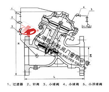 4、F745X隔膜式遙控浮球閥主要根據剖面、長度、高度、外形等作出說明。