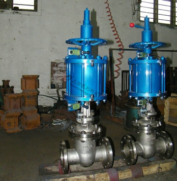 1、本閥主要由閥體、閥蓋、閘板、閥桿、密封圈、雙層氣缸及其活塞、活塞桿、隔板連同緩沖機構、手動機構、氣動-手動轉換裝置和閥蓋填料裝置等部分組成。