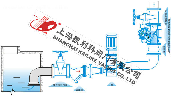 1、設定調節閥A、B的開度和開度比可得到合適的閥門啟閉速度。防止水錘效果好,將緩開、止回速閉、緩閉等消除水錘的技術一體化,防止開泵不錘和停泵倒流與水錘對供水管路和水泵的損害。